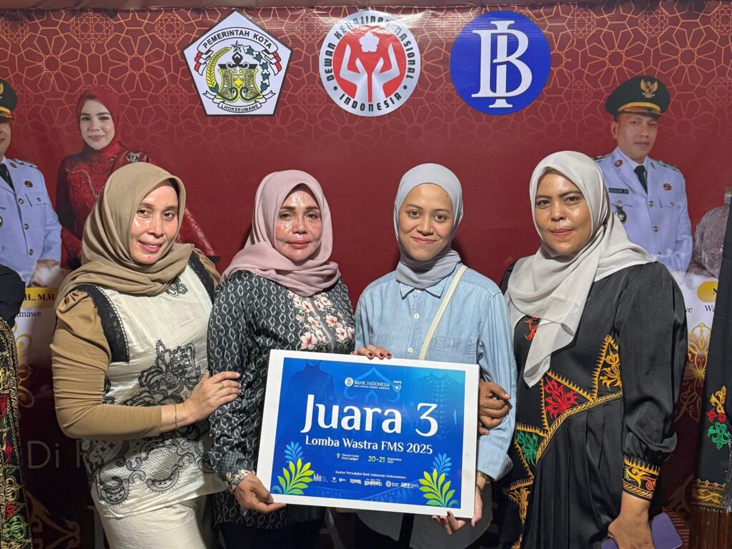 Lhokseumawe | InfoLhokseumawe.com — Dewan Kerajinan Nasional Daerah (Dekranasda) Kota Lhokseumawe berhasil menorehkan prestasi membanggakan dengan meraih Juara 3 untuk kategori Wastra Nusantara dalam ajang Festival Meurah Silu yang diselenggarakan oleh Bank Indonesia (BI) di Kota Langsa pada Sabtu dan Minggu, 20-21 September 2025.